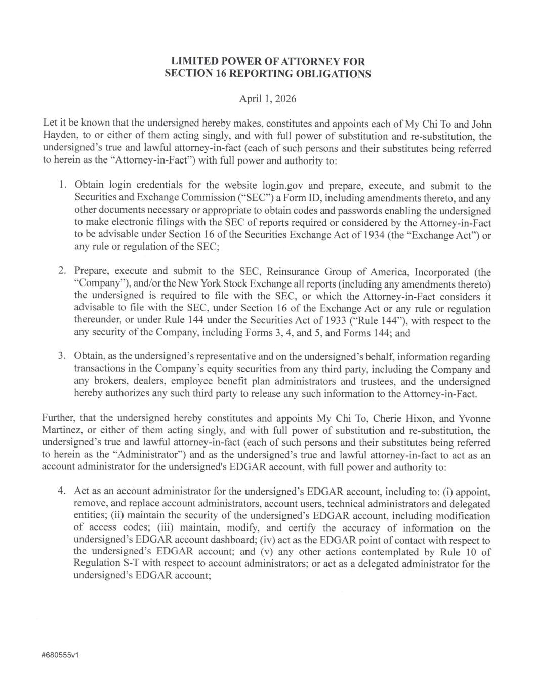 REINSURANCE GROUP OF AMERICA INC [ RGA ] |